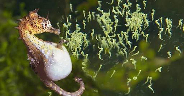 அதாவது பெண் கடற்குதிரைகள் தங்களின் முட்டைகளை ஆண்களின் வால் பகுதியில் உள்ள இ னப்பெருக்க பைகளில் போட்டுவிடும். அதனை ஆண் கடற்குதிரைகள் கங்காரு போல பேணி காத்து 6 வாரங்கள் பாதுகாத்து குஞ்சு பொரிக்கும். சுமார் 200 முட்டைகளில் 50 முதல் 100 வரையிலான குட்டிகள் வெளியே வரும்.