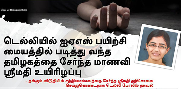 லட்சியத்துடன் ஐஏஎஸ் படிக்க சென்ற தமிழக மாணவி தற்கொலை : பகீர் கடிதம் சிக்கியது!!