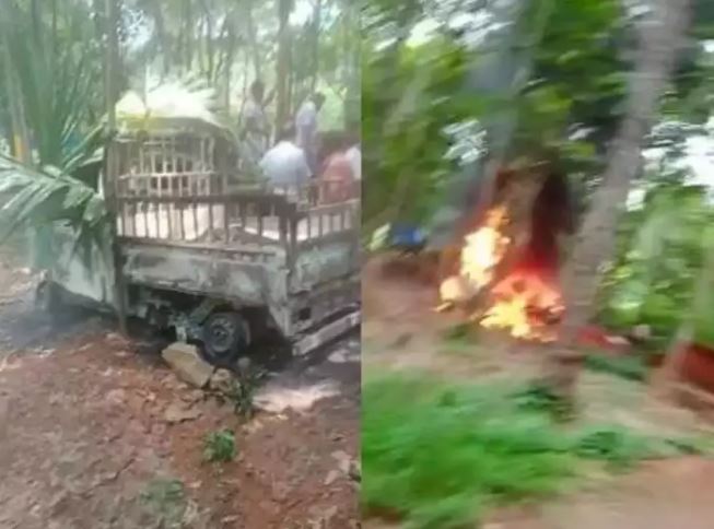 லோடு ஆட்டோவில் மனைவி, மகள்களை பூட்டி தீ வைத்து கொளுத்திய கணவன் : அரங்கேறிய திகில் சம்பவம்!!