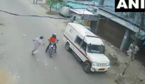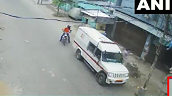 Bihar: Two bike-borne criminals attempted to loot a cash van near Puraini Bazar Central Bank gate in Muzaffarpur, yesterday. Their attempts were thwarted by the security guards.