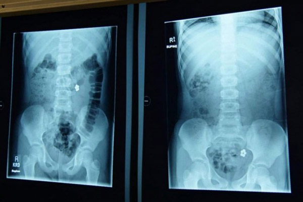அங்கு சிறுமி ஒலிவியாவுக்கு மருத்துவர்கள் ஸ்கேன் செய்து அதன் அறிக்கையை பார்த்த போது அ திர்ச்சியடைந்தனர். காரணம் சிறிது சிறிதான காந்த உருண்டைகளை அவர் அதிகளவில் விழுங்கியதும் அது செரிமானம் ஆகும் இடத்தில் சிக்கி கொண்டதும் அதில் தெரியவந்தது.