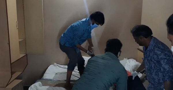 பின்னர் நீண்டநேரமாகியும் அவர்கள் வெளியே வராததால் சந்தேகமடைந்த ஊழியர்கள் அறைக்கதவை தட்டி உள்ளனர். அப்போது, அறைக்கதவு திறக்காததால் அதனை உடைத்துச் சென்று உள்ளே பார்த்துள்ளனர்.