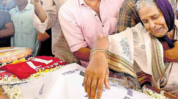 இந்தியாவின் கேரள மாநிலத்தில் உதைப்பந்து ஆட்டத்தினிடையே சு ருண்டு வி ழுந்து ம ரணமடைந்த இளைஞரின் இறுதி அஞ்சலி ஊர்வலத்தில் மொத்த கிராமமும் கண்ணீருடன் பங்கேற்றுள்ளது.