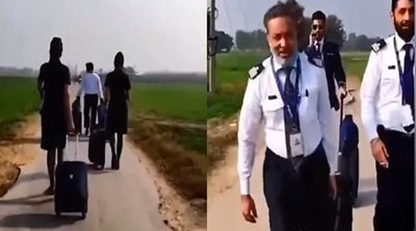 இதனால் விமானிகள் மற்றும் விமான பணிப்பெண்கள் அனைவரும் கோதுமை வயல் வழியாக 2 கிலோ மீட்டர் தூரம் நடந்து சென்று மொகாலி விமான நிலையத்தை அடைந்தனர்.