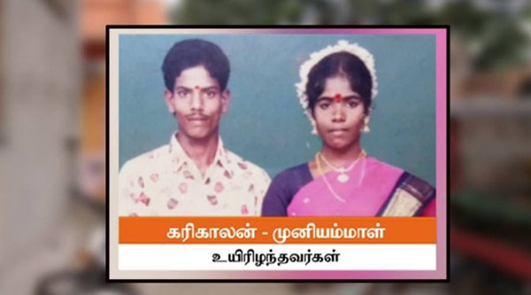 தலைநகர் சென்னையில் உள்ள வியாசர்பாடி எருக்கஞ்சேரி பகுதியை சேர்ந்த தம்பதி கரிகாலன் – முனியம்மாள். இவர்கள் தங்கள் மகள் குணவதியின் திருமணத்துக்காக பெற்ற 7 லட்சம் ரூபாய் கடனை அடைக்க கடந்த மாதம் தங்கள் வீட்டை விற்றதாகக் கூறப்படுகிறது.