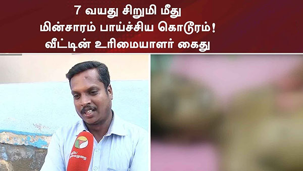 தமிழகத்தில் வீட்டை காலி செய்யாததால், வாடகை வீட்டில் வசித்த தம்பதியரின் 9 வயது மகள் மீது உரிமையாளர் மின்சாரத்தை பாய்ச்சி சித்ரவதை செய்த சம்பவம் பரபரப்பை ஏற்படுத்தியுள்ளது.