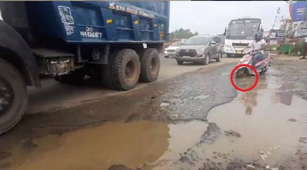 தமிழகத்தில் சாலையில் இருந்த பள்ளத்தால் ஏற்பட்ட விபத்தில் கணவன் முன்னே மனைவி துடிதுடிக்க இ றந்த சம்பவம் சோகத்தை ஏற்படுத்தியுள்ளது.
