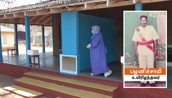 இந்நிலையில் பழனிச்சாமிக்கும் அவரது மனைவி இந்திராணி மற்றும் மகள் விமலாவுக்கும் கொரோனா நோய் தொற்று உறுதி செய்யபட்டு கொரோனா சிகிச்சை மையத்தில் சேர்க்கபட்டனர். இதில் பழனிச்சாமிக்கு லேசான பாதிப்பு எனக்கூறிய மருத்துவர்கள், அவர் வீட்டில் இருந்து தனிமைபடுத்தி கொண்டு சிகிச்சை பெற அறிவுறுத்தியுள்ளனர்.ஆனால் பழனிச்சாமிக்கு மூச்சு விடுவதில் சிரமம் ஏற்பட்டத்கால், மீண்டும் மருத்துவமனைக்கு சென்றுள்ளார்.