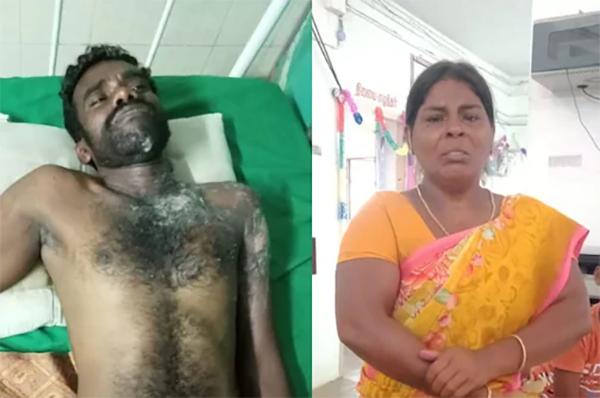 தூத்துக்குடி மாவட்டம் விளாத்திகுளம் அருகே வீட்டை எழுதி தர வ.லி.யுறுத்தி கணவன் மீது ம.னைவியே வெந்நீரை ஊற்றிய ச.ம்.ப.வம் ப.ர.ப.ர.ப்பை ஏற்படுத்தி உள்ளது. உடல் வெந்த நிலையில் சிகிச்சை பெற்று வரும் கணவன்,