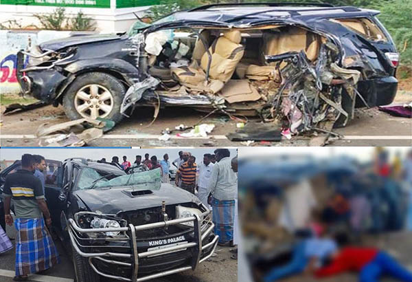 இந்தக் கோர விபத்தில் காரில் பயணித்த உஸ்மான் அலி, அவரின் மகள்கள் ஹைநூல் ரசியா, தஸ்லிமா பானு ஆகியோர் சம்பவ இடத்திலேயே பலியாகியுள்ளனர். மோட்டார் சைக்கிளில் சாலையைக் கடக்க முயன்ற சங்கரும் மரணமடைந்துள்ளார்.