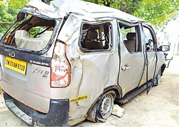 காரை சிவா என்பவர் ஓட்டினார். காரானது உளுந்தூர்பேட்டை அடுத்த ஒலையனூர் அருகே சென்றபோது, திடீரென பின்பக்க டயர் வெடித்தது. இதில் சிவாவின் கட்டுப்பாட்டை இழந்த கார் சாலையோரத்தில் இருந்த தடுப்புக்கட்டையில் மோதியது. இந்த விபத்தில் அசன் உ டல் நசுங்கி சம்பவ இடத்திலேயே உ யிரிழந்தார்.
