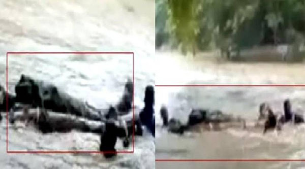 வெள்ளத்தின் நடுவே சடலம் .. போராடும் உறவுகள் : நெஞ்சைப் உருக்கும் காட்சி!!