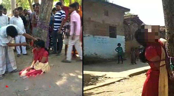 இந்தியாவின் பீகாரில் உள்ள கிராமத்தில் வேற்றுச் சாதியைச் சேர்ந்த இளைஞரைக் காதலித்து மணந்த இளம் பெண்ணை மரத்தில் கட்டி வைத்து அடித்த சம்பவம் அதிர்ச்சியை ஏற்படுத்தியுள்ளது.