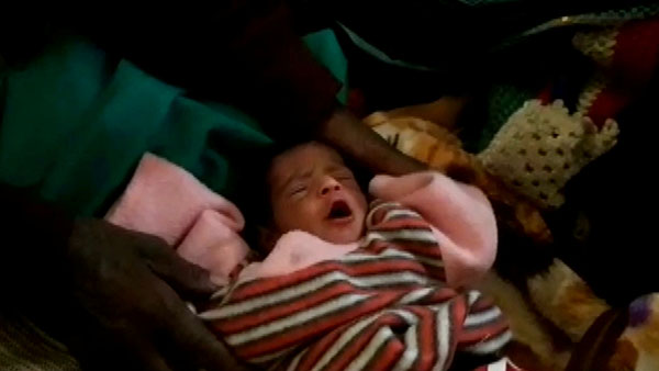 அ ப் போ து து ணி யி ல் சு ற் ற ப் ப ட் டு, ம ண் ணு க் குள் அ ரை கு றை யா க பு தை க் க ப் பட்ட நி லை யில் பி ற ந்து சி ல ம ணி நே ர ங் க ளேயா ன சி சு இ ரு ப் பது தெ ரி யவ ந் தது.