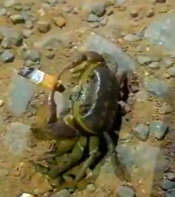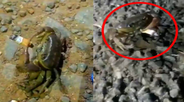 அந்த காணொளியில், கீழே கிடந்த ஒரு சி கரெட்டை எடுத்து அதை ஸ்டைலாக பு கைக்கிறது அந்த நண்டு.