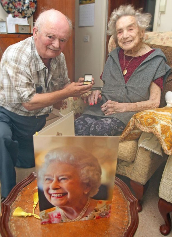 பிரித்தானியாவின் வெல்ஸ் கவுண்டியில் உள்ள denbighshire பகுதியிலேயே இந்த வியக்க வைக்கும் காதல் திருமணம் நடந்துள்ளது. காதலுக்கு வயது ஒரு பிரச்னையே இல்லை என்பதை இந்த 100 வயது Norah Witkiss என்ற பெண்மணி நிரூபித்துள்ளார்.