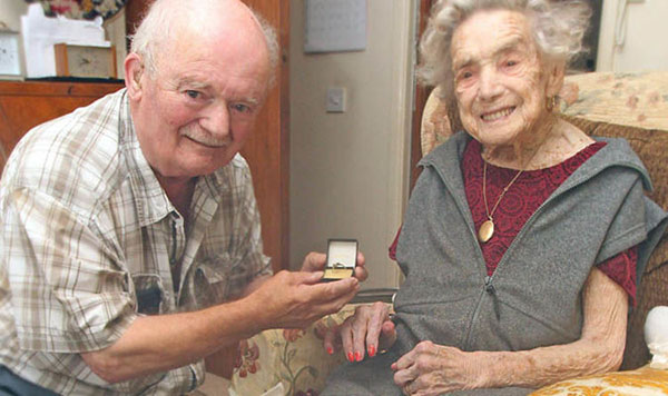 பிரித்தானியாவில் உள்ள denbighshire பகுதியில் தன்னைவிட 26 வயது இளையவரான நபரை 30 ஆண்டுகள் காதலித்து 100 வயது மூதாட்டி ஒருவர் திருமணம் செய்து கொண்டுள்ளது பலரது கவனத்தையும் ஈர்த்து வருகிறது.