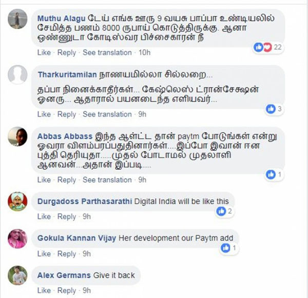 இதை அவர் தான் 10 ஆயிரம் ரூபாய் நிதியுதவி அளித்துள்ளதாகவும் அதேபோல் நிதியுதவி அளிக்கவிரும்புவோர் PAYTM பயன்படுத்தி நிதியுதவி அளிக்கலாம் என மொபைல் ஸ்க்ரீன் ஷாட் ஒன்றை தன்னுடைய டுவிட்டர் பக்கத்தில் பதிவேற்றம் செய்தார்.