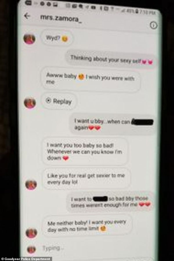 அரிசோனாவைச் சேர்ந்த Brittany Zamora (28), Las Brisas Academyயில் ஆசிரியையாக பணியாற்றி வந்தார். இருவருக்கும் இடையில் ஆ பாச குறுஞ்செய்திகள் அனுப்புவதில் தொடங்கிய உறவு, கடைசியில் பா லுறவு கொள்வதில் முடிந்தது.