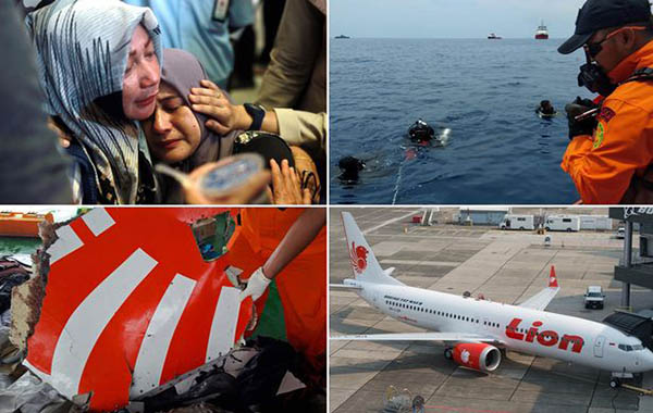 தலைநகர் ‌ஜகார்த்தாவில் இருந்து பங்க்கால் பினாங்கு தீவிற்கு புறப்பட்ட போயிங் 737 மேக்ஸ் 8 ரக பயணிகள் விமானம் சில நிமிடங்களிலேயே விபத்துக்குள்ளானது. இதில், 178 பயணிகள் உட்பட அனைவரும் பலியானார்கள். மீட்புக் குழுவினர் விமான பாகங்கள், பயணிகளின் உடல்கள் மற்றும் அவர்களது தனிப்பட்ட பொருட்களையும் மீட்டுள்ளனர்.