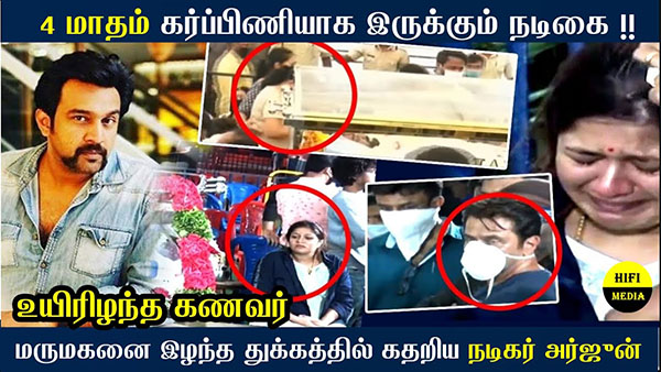 4 மாதம் கர்ப்பிணியாக இருக்கும் நடிகை..!! திடீரென உ யிரிழந்த கணவர் : மருமகனை இழந்த துக்கத்தில் கதறிய நடிகர் அர்ஜுன்..!!