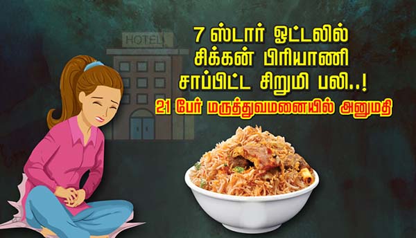 7 ஸ்டார் ஓட்டலில் சிக்கன் பிரியாணி சாப்பிட்ட சிறுமி பலி: 21 பேர் மருத்துவமனையில் அனுமதி!!