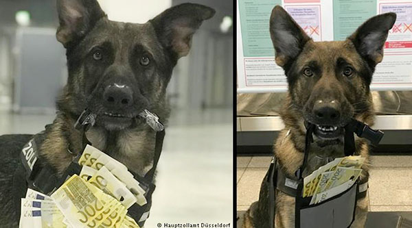 பணிக்கு வந்து மூன்றே மாதங்களில் ஜேர்மனியின் மோப்ப நாய் ஒன்று 745,000 யூரோக்கள் கரன்சியை கண்டு பிடித்துள்ளது. மேற்கு ஜேர்மனியின் Düsseldorf விமான நிலையத்தில் ரோந்து பணியில் ஈடுபடுத்தப்பட்டிருந்த Luke என்னும் அந்த மோப்ப நாய் 745,000 யூரோக்கள் கரன்சியை கண்டு பிடித்துள்ளதாக சுங்கத்துறை அலுவலர்கள் தெரிவித்துள்ளனர்.