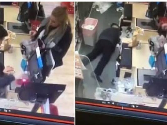 திடீரென்று மயங்கி விழுந்த நபர்… பதறித் துடித்த பெண்! சூப்பர் மார்க்கெட்டில் நடந்ததை வெளிச்சம் போட்டு காட்டிய வீடியோ!!
