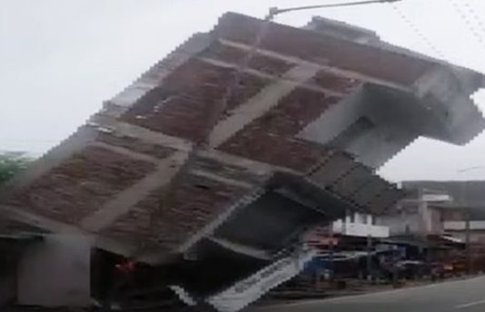 திடீரென சரிந்து விழுந்த மூன்று மாடிக் கட்டடம் … கணப்பொழுதுகளில் தப்பிய சரக்கு வாகனம்… அதிர்ச்சி வீடியோ..!