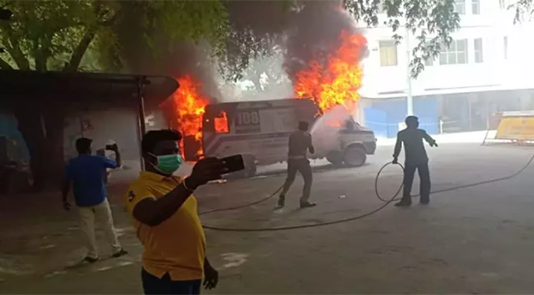 கோவை அரசு மருத்துவமனையில் நோயாளியை அழைத்து சென்ற ஆம்புலன்சில் இருந்த ஆக்சிஜன் சிலிண்டர் வெ.டி.த்.ததில் தீ விபத்து ஏற்பட்டது.