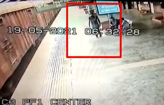 ஓடும் சரக்கு ரயிலில் ஏற முயன்று இடறி விழுந்த ஆர்பிஎஃப் வீரர்..! வெளியான திகிலூட்டும் CCTV வீடியோ!!