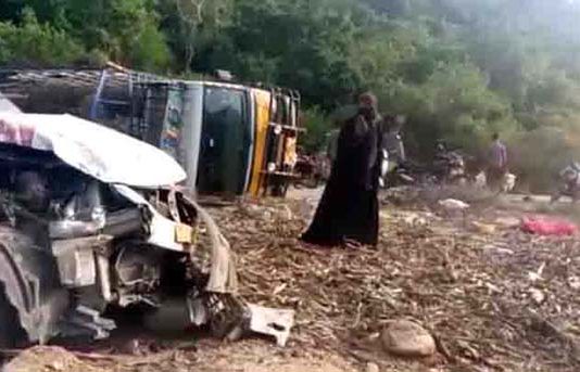 கறிக்கோழி ஏற்றிச்சென்ற லாரி மீது கார் மோதி விபத்துக்குள்ளானதில் 2 பேர் உயிரிழந்த நிலையில் பறந்த சென்ற கோழிகளை பொதுமக்கள் பிடித்து சென்றனர்.