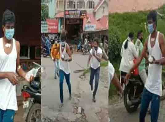 குளுக்கோஸ் பாட்டிலுடன் சாலையில் செல்வோரை துரத்திய ‘கொரோனா’ பேஷன்ட்’.. ‘அலறியடித்துக்கொண்டு ஓடிய பொதுமக்கள்…!!
