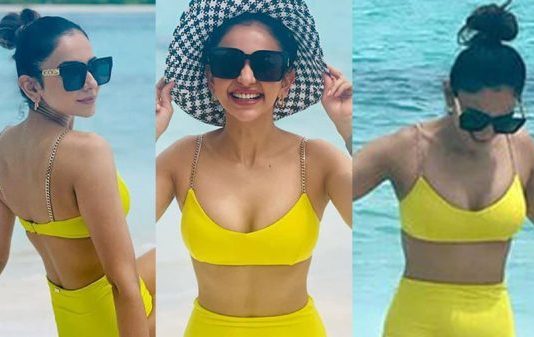 பீச்சில் பிட்டுத்துணியால் கவர்ச்சி காட்டிய ரகுல் பிரீத் சிங்.. ஆடிப்போன ரசிகர்கள்!!