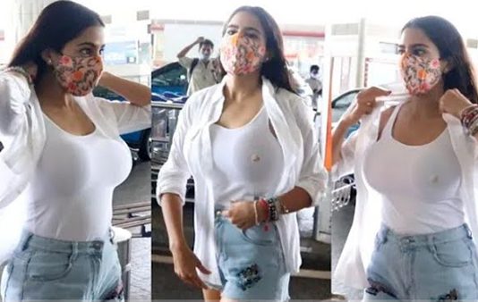 தொப்பையை பிடித்து இப்படியா காட்டுறது.. கவர்ச்சி உடையில் புகைப்படத்தை வெளியிட்ட சாரா அலி கான்!!