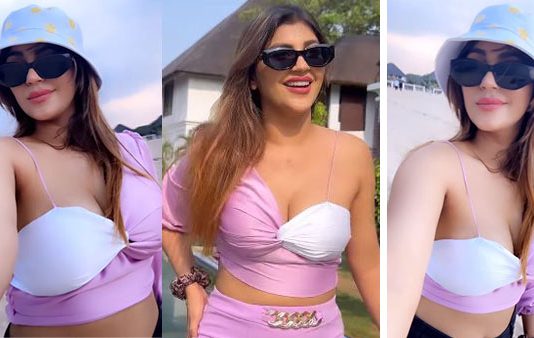 மேலாடையை ஓப்பனாக விட்டு பிதுங்கும் முன்னழகை காட்டி ரசிகர்களை சூடேற்றிய சஞ்சனா சிங்!!