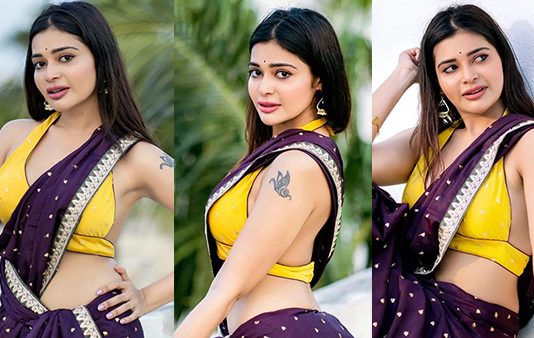 முன்னழகு எடுப்பாக தெரியும் படி போஸ் கொடுத்து ரசிகர்களின் கவனத்தை ஈர்த்த ரவீனா தாஹா!!