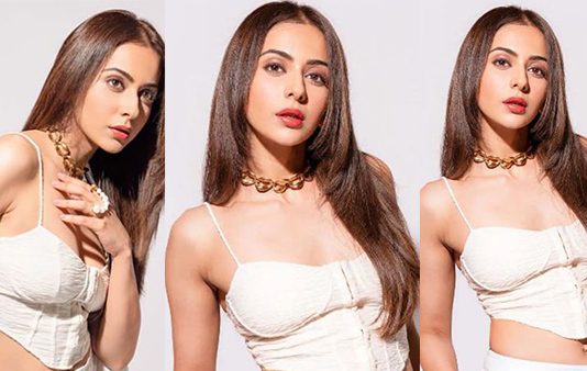 பாலில் ஊற வச்ச ரசகுலா.. பளிங்கு தொடையை பளிச்சென காட்டி சூடேற்றும் ரகுல் ப்ரீத் சிங்!!
