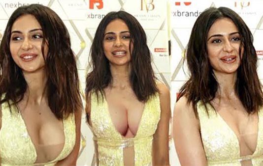 பின்னாடி கிழிஞ்சி தொங்கும் பாவாடையில் கவர்ச்சி காட்டி திணறடித்த ரகுல் ப்ரீத் சிங்!!