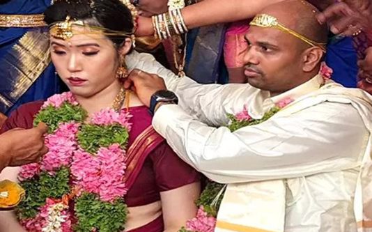தமிழகத்தை சேர்ந்த பொறியியல் பட்டதாரி ஒருவர் தென் கொரிய நாட்டைச் சேர்ந்த இளம் பெண்ணை காதலித்து தமிழக பாரம்பரிய முறைப்படி கரம் பிடித்துள்ளார்.