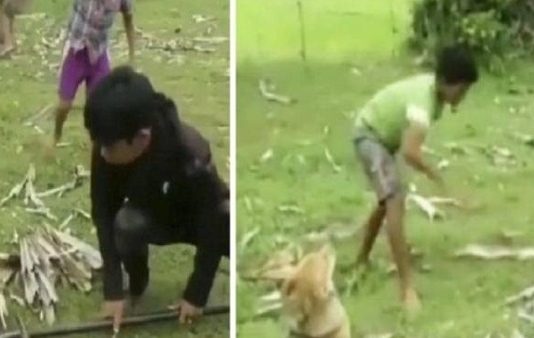 நாயை சுற்றி வளைத்த மலைப்பாம்பு… துணிச்சலுடன் போராடி உயிரை காப்பாற்றிய 3 சிறுவர்கள் : வைரல் வீடியோ!!
