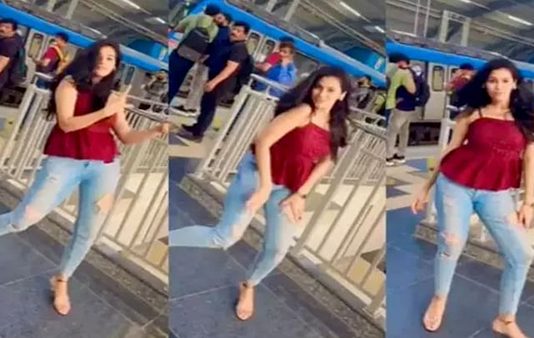 தெலங்கானா மாநிலம் ஹைதராபாத் பகுதியில் உள்ள மெட்ரோ இரயிலில் இளம்பெண் ஒருவர் திரைப்பட பாடலுக்கு நடனம் ஆடும் வீடியோ வெளியாகியுள்ளது.