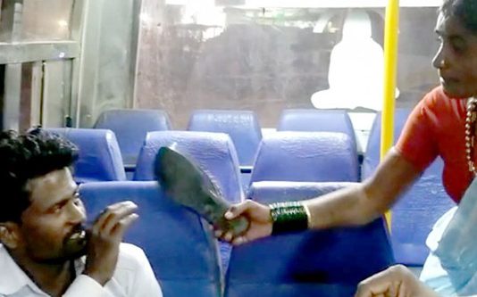 கர்நாடக மாநிலம், பாதாமி என்ற பகுதியில் அரசு பேருந்து ஒன்று சென்று கொண்டிருந்தது. இதில் பெண் ஒருவர் பயணம் செய்துள்ளார்.