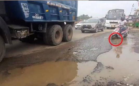 தமிழகத்தில் சாலையில் இருந்த பள்ளத்தால் ஏற்பட்ட விபத்தில் கணவன் முன்னே மனைவி துடிதுடிக்க இ றந்த சம்பவம் சோகத்தை ஏற்படுத்தியுள்ளது.