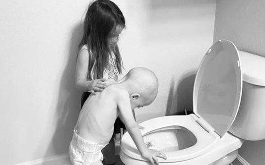 அமெரிக்கவில் இரத்த புற்றுநோயால் பாதிக்கப்பட்டிருக்கும் சிறுவனை அவனுடைய சகோதரி தேற்றும் புகைப்படம் ஒன்று இணையத்தில் வைரலாக பரவி வருகிறது.