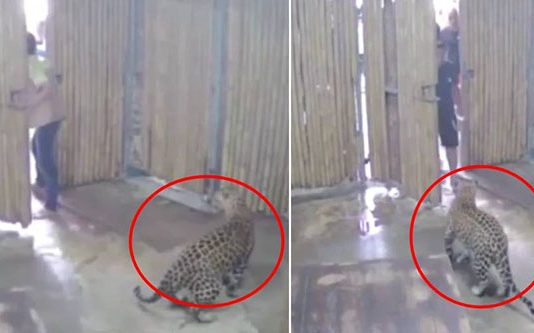 சிறுத்தை இருந்த கூண்டை தெரியாமல் திறந்த விட்ட நபர் : அதன் பின் நடந்த சம்பவத்தின் சிசிடிவி காட்சி புகைப்படங்கள்!!