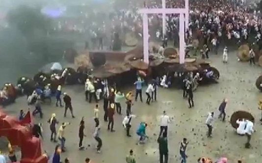 இந்தியாவின் உத்தரகாண்ட் மாநிலத்தின் சம்பவாட் பகுதியில் நடைபெறும் பக்வால் மேளா எனப்படும் வித்தியாசமான திருவிழாவிலேயே அங்குள்ள கிராம மக்கள் கற்களால் தா க்கியுள்ளனர்.