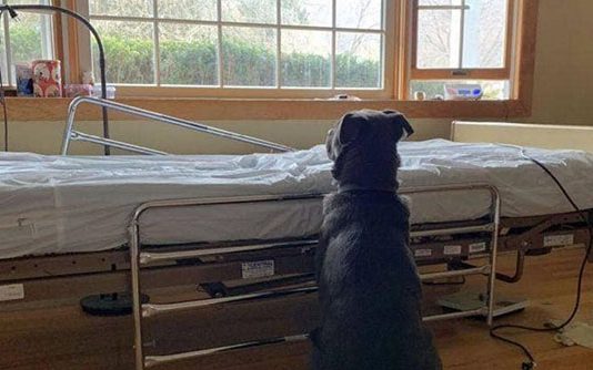 இறந்த எஜமானருக்காக படுக்கை அருகே காத்திருக்கும் நாய் : மனதை உருகவைக்கும் புகைப்படம்!!