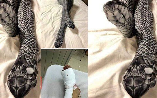 பாம்பு போன்று உடை அணிந்திருந்த மனைவியின் கால்களை பதம் பார்த்த கணவன் : நடந்த வினோத சம்பவம்!!