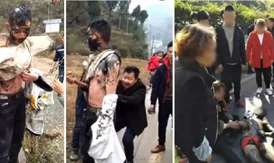 சீனாவில் திருமணத்திற்கு முன்னதாக மணமகனின் உடலில் உள்ள தீய ஆவிகள் விரட்டப்படும் சடங்கு என்ற பெயரில் மணமகனை அடித்து உதைத்துள்ள கொடுமை அரங்கேறியுள்ளது.